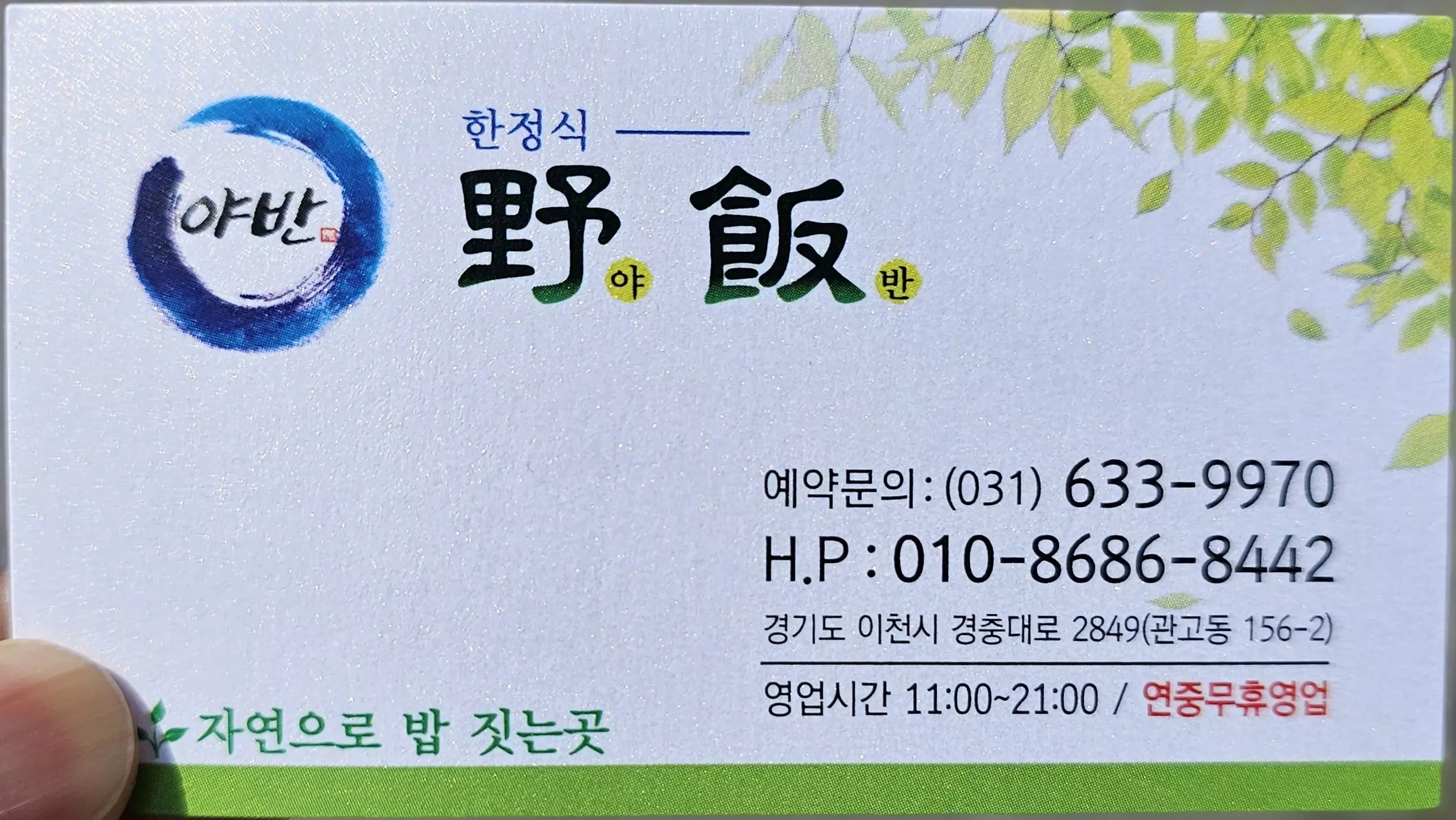 경기도 이천 쌀밥집 야반은 월요일부터 일요일까지 휴무 없이 운영이 되고 있는 것이 눈에 띕니다.