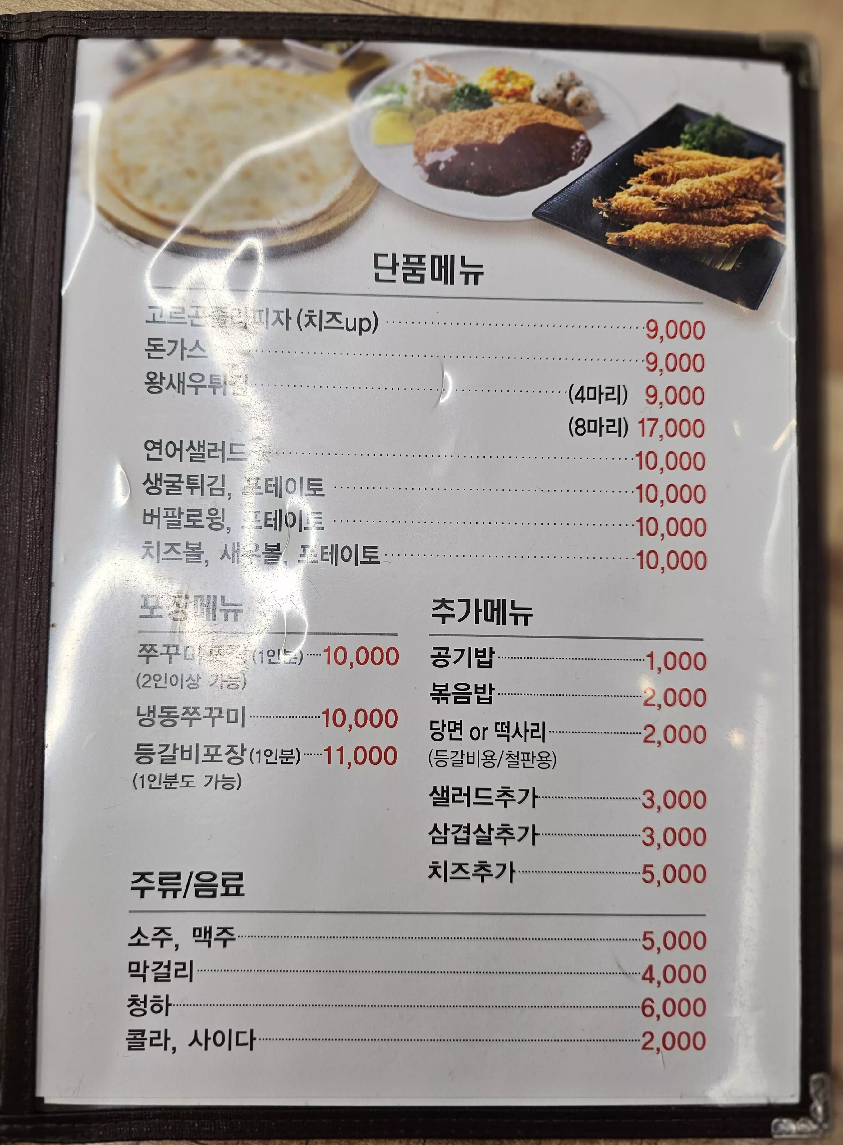 자리를 잡고 앉아 무엇을 먹을지 메뉴판을 확인해 보았습니다.