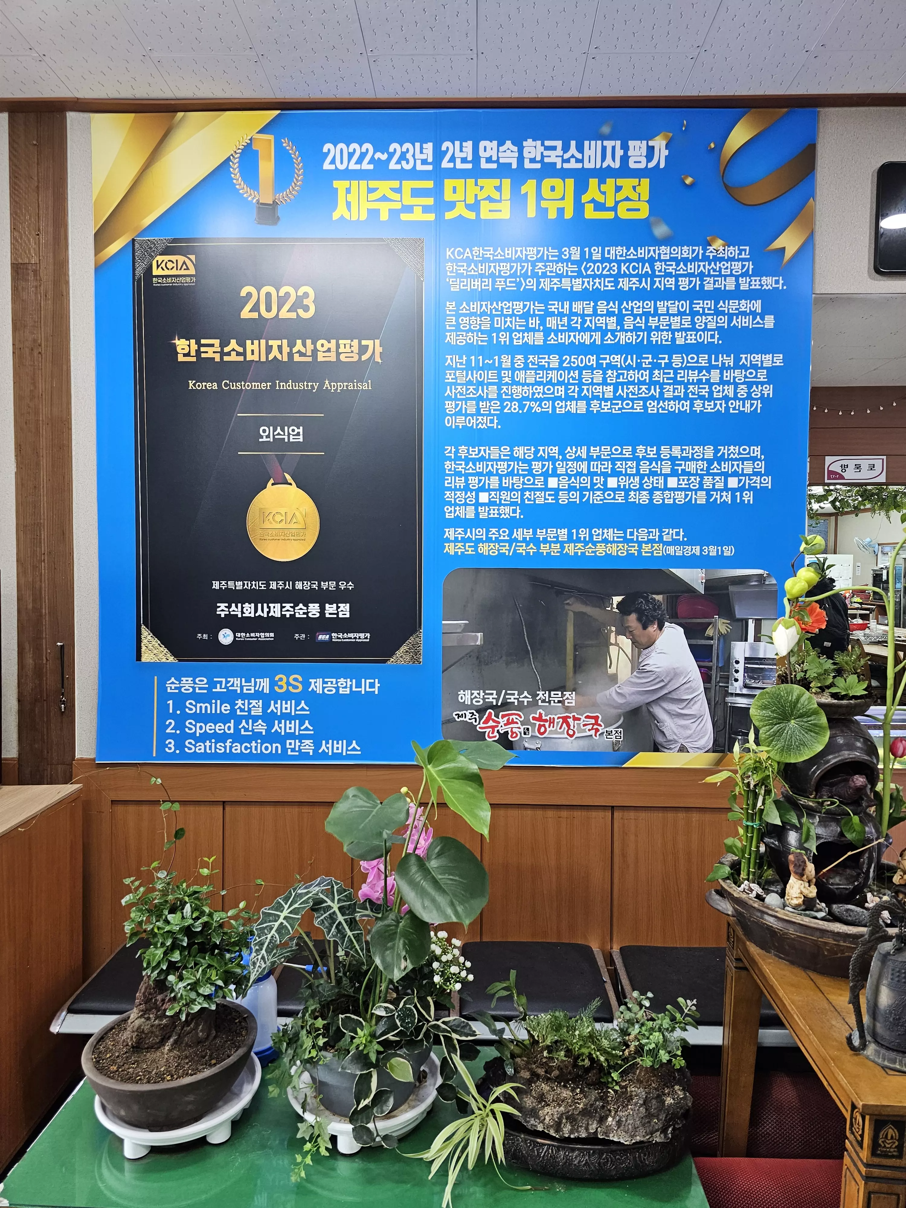 참고사항으로 순풍해장국은 2022년과 2023년 한국 소비자 평가 제주도 맛집 1위로 선정되었다고 합니다.